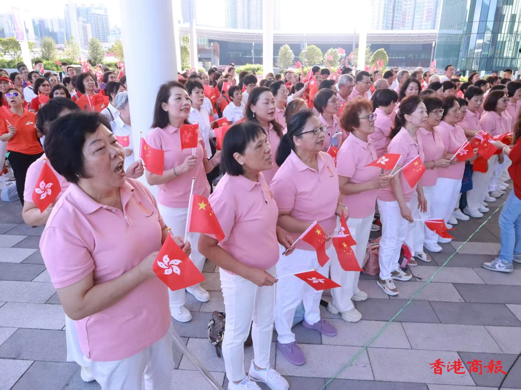 香港愛樂樂團合唱團與超過十支,包括主協辦單位的少兒和成人合唱團數百人,一起合唱《獅子山下》和《東方之珠》;最後由樂團演奏、參與者齊唱《歌唱祖國》,在雄壯的歌聲中於啟德體育園中央廣場展示十米乘八米巨型國旗。