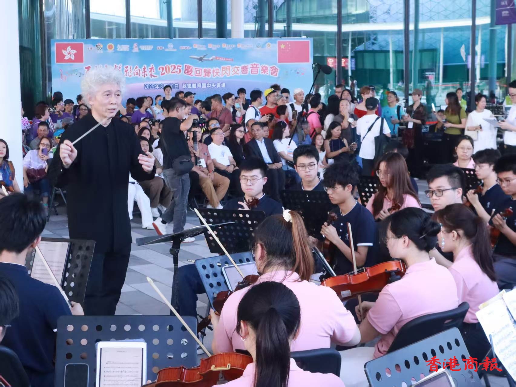 頂圖圖説:「再啟新篇,飛向未來」2025慶回歸快閃交響音樂會,今午在啟德體育園中央廣場舉行。