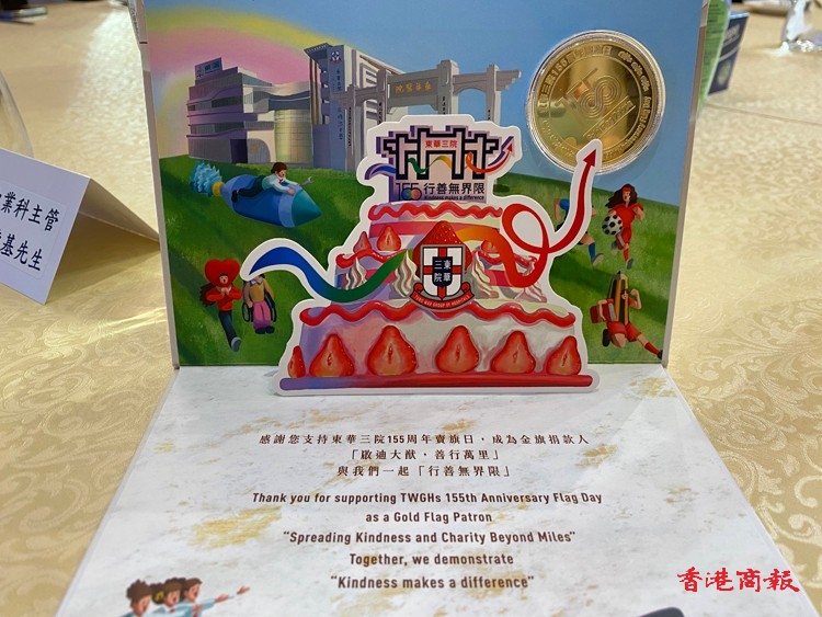 適逢本月20日為該院一年一度的全港籌募活動「東華三院賣旗日」,為呼應155周年主題「行善無界限」,特別邀請本地藝術家Thomas Napoleon設計一套6款的紙旗,以清新水彩風格生動呈現該院在醫療、教育、社會服務、籌募活動、歷史文化保育及公共服務。設計更以155周年綵帶圖案串連,象徵東華三院團隊在慈善路上同心協力,屢創可能。