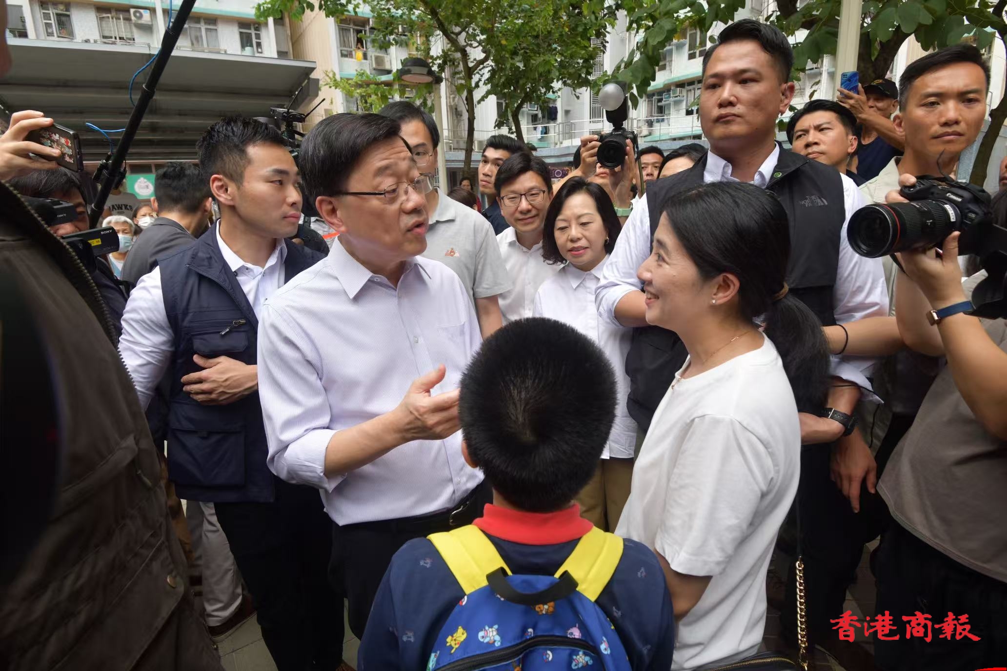 行政長官李家超下月17日將發表新一份施政報告,他繼上周到牛頭角彩興路簡約公屋項目視察和聽取意見後,今日繼續落區,了解市民對施政報告意見。他今日(30日)早上在勞工及福利局局孫玉菡、民政及青年事務局局長麥美娟陪同下,訪筲箕灣愛東邨。此行是希望了解長者生活,以及社福機構和志願團體提供的支援,他稱得知關愛隊能為市民提供幫助感到非常高興。