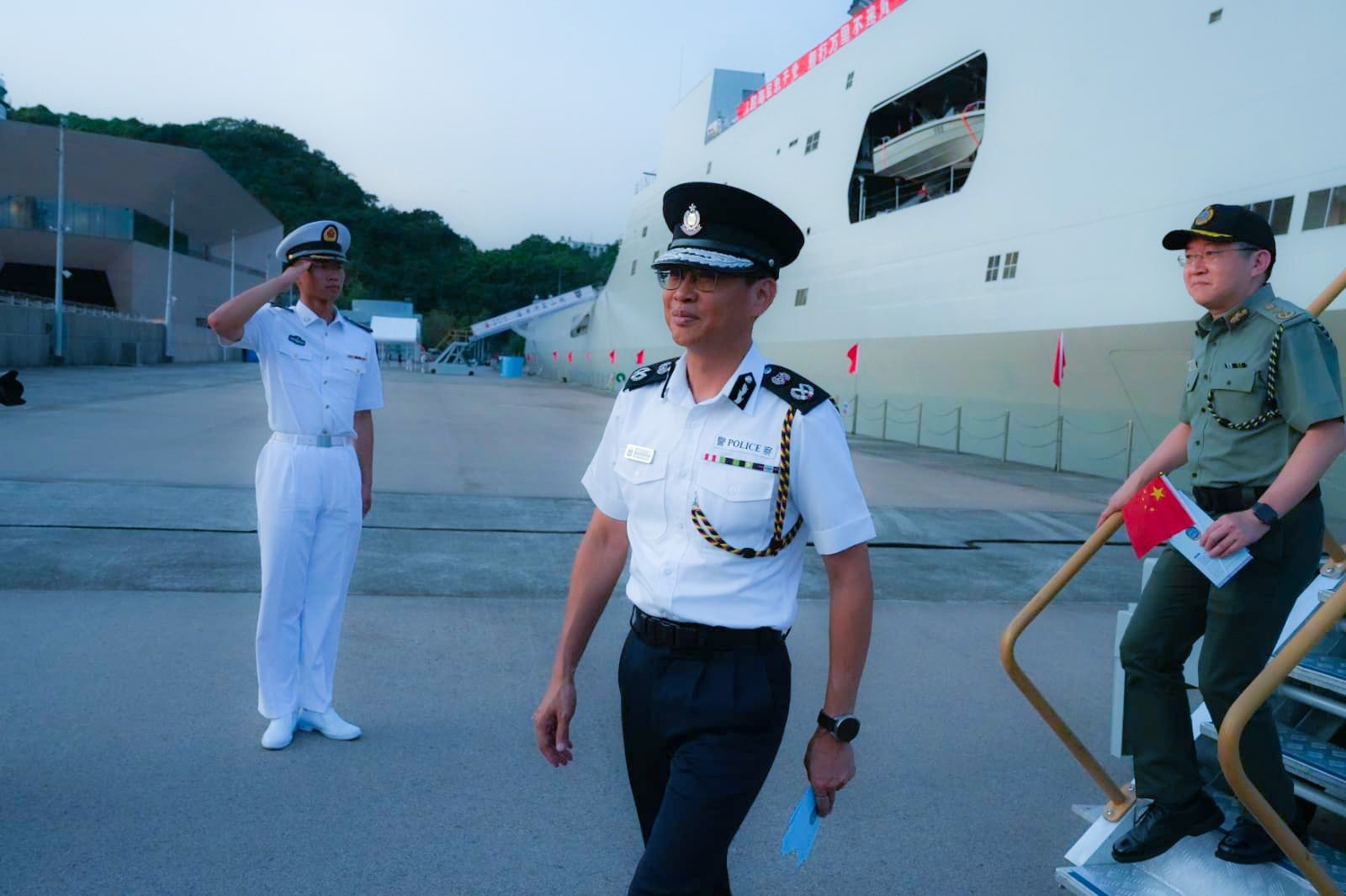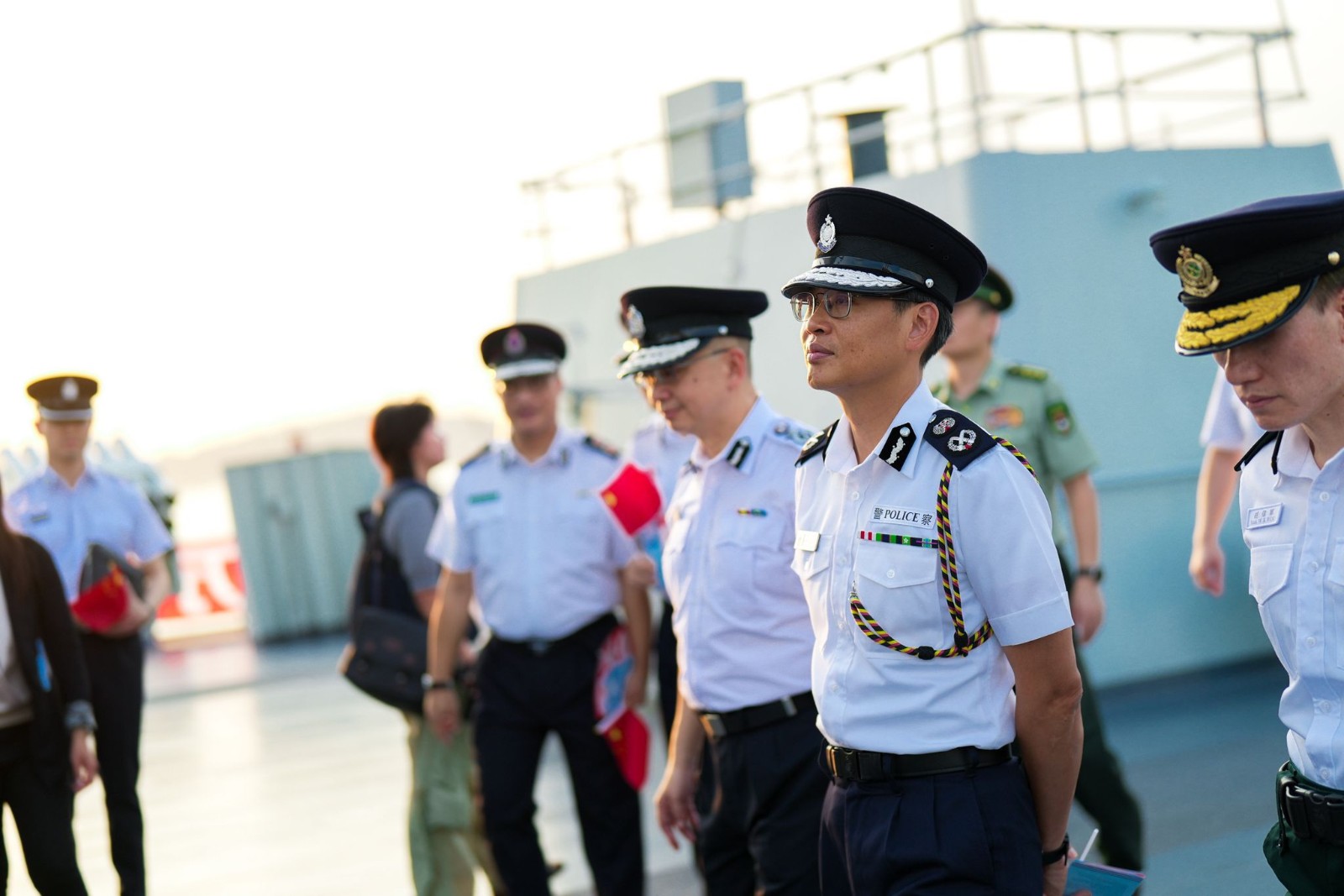 保安局局長鄧炳強、警務處副處長(管理)陳俊燊及各紀律部隊代表今日一同登艦參觀,近距離見證國家海軍先進艦艇的發展,體驗海軍官兵的專業素養與國家海上力量的蓬勃發展,不僅加深對國防事務的認識,也展現中國海軍現代化建設成果與自信開放的優良形象。(記者 區天海)