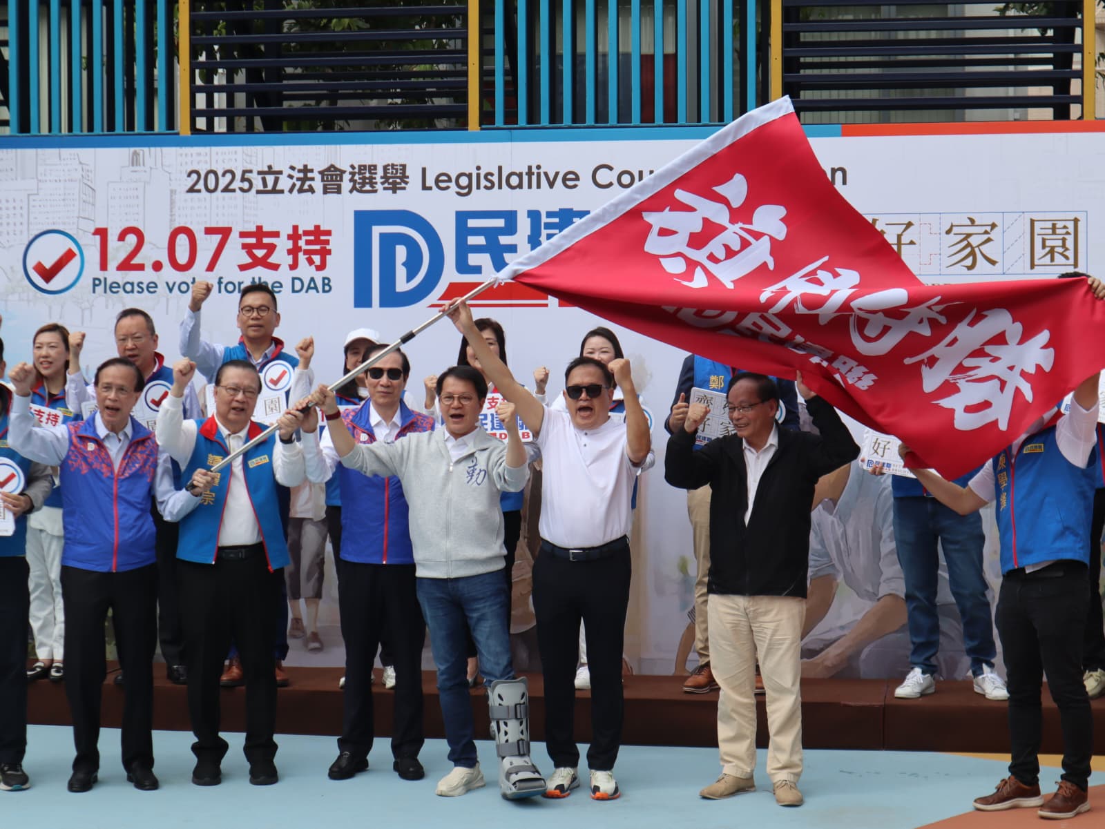 頂圖:民建聯今早在沙田排頭村遊樂場舉行立法會候選人集氣大會。