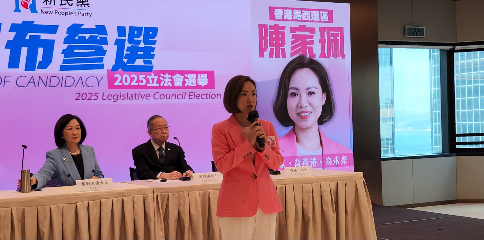 新一屆立法會選舉將於今年12月7日舉行,提名期昨日(24日)展開,各個政黨和工會積極部署參選團隊名單。新民黨今早(25日)公布8人參選名單,7人參加地區直選,1人參加選舉委員會界別選舉,當中現屆立法會議員陳家珮、李梓敬和何敬康爭取連任,主席葉劉淑儀、常務副主席黎棟國及副主席容海恩不競逐連任。