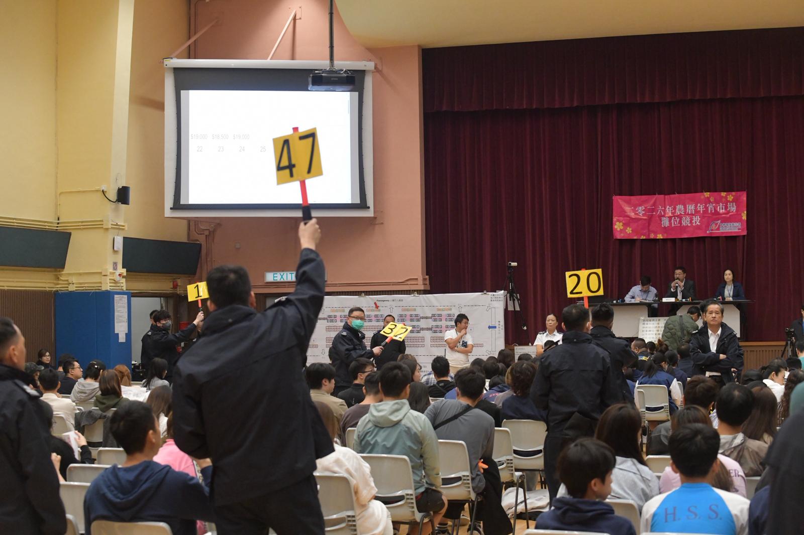 頂圖:2026年維園年宵市場攤位競投,今日在荔枝角政府合署進行。(記者 崔俊良攝)