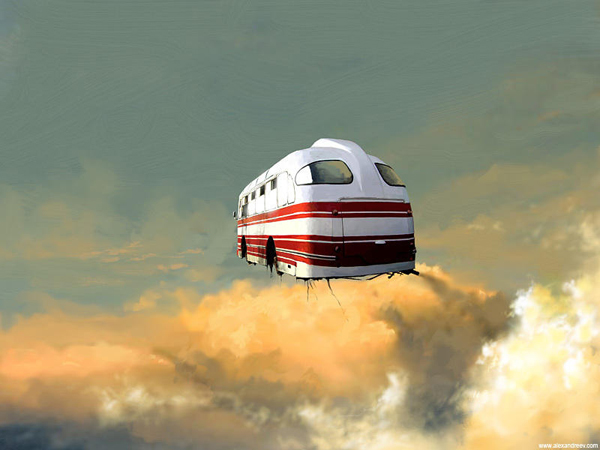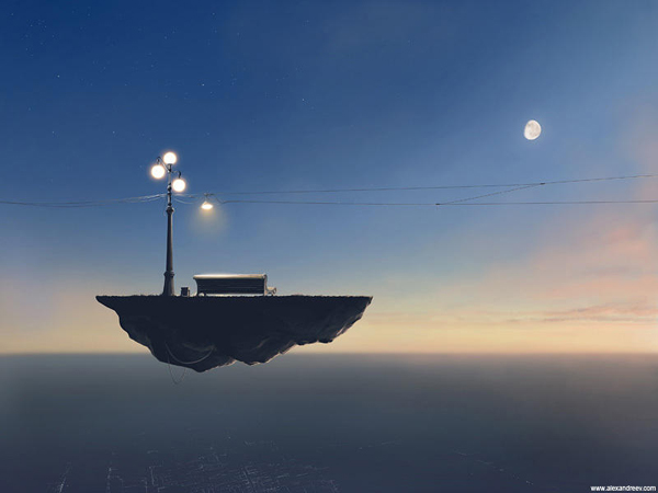 Alex Andreyev的作品内容虚幻飘渺,充满了漂浮,飞翔,以及未来感。
