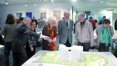 柏林市民观看中国山水城市设计展上的各种建筑模型