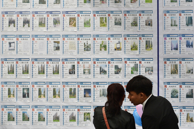 4月17日,一名置业顾问在向购房者介绍楼盘信息。