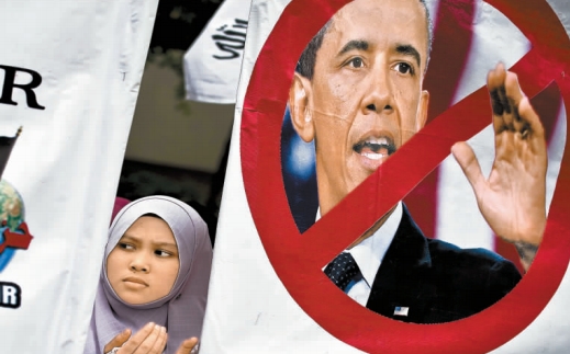 在馬來西亞,有示威者到當地美國領事館示威,反對奧巴馬到訪。法新社