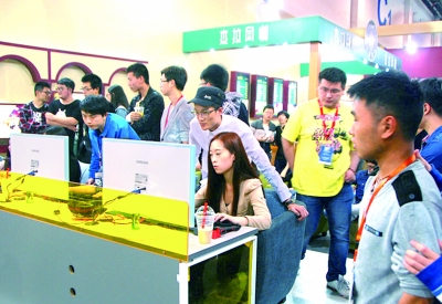 第九届义乌文交会展出了一系列文化产业新业态、新技术、新产品、新概念、新工艺、新设计。图为杭州杰拉网咖公司“上网+水吧”多元化主题经营模式展示现场。