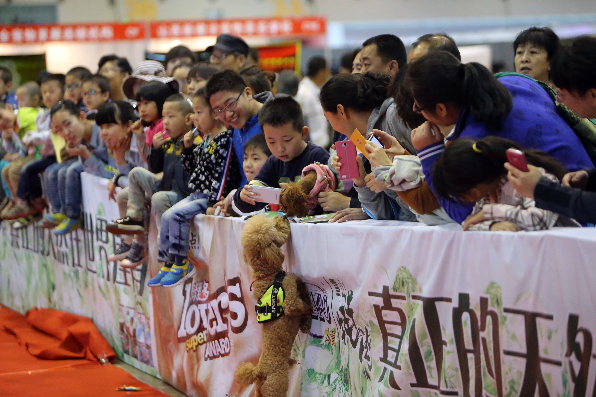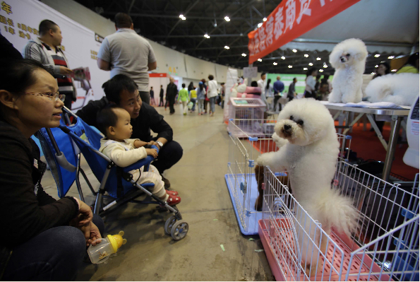 5月2日,市民带着孩子前来观看名犬。当日,首届山西太原宠物文化节正在中国(太原)煤炭交易中心举行,不少喜爱宠物的太原市民带着自己心爱的宠物前来参与这场“宠物总动员”。
