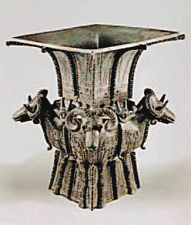 四羊方尊,商朝晚期青銅禮器,祭祀用品。1938年出土於湖南寧鄉縣黃材鎮月山鋪轉耳侖的山腰上。收藏於中國國家博物館。