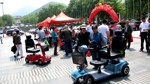 当日,一款全智能操控的电动便携车在济南舜耕国际会展中心广场上亮相,引来许多中老年人的围观和试驾。该车座椅可调、可折叠、可旋转,携带方便,采取电磁刹车、电力驱动,续航达四十公里以上。