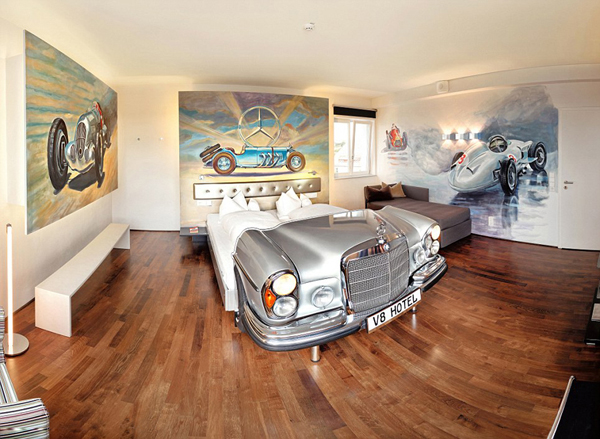 V8汽车主题酒店是德国四星级的现代化酒店,坐落在斯图加特(Stuttgart)的汽车博物馆中。酒店里设有各种套房及客房,每间房都被设计成不同的主题。