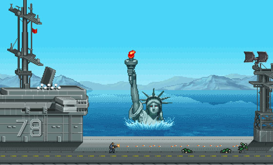 正式预告片片头向观众们展示金正恩的档案照,他似乎在筹备击退外国侵略,随后才是以90年代小游戏8位机风格体现的该游戏自身的画面。