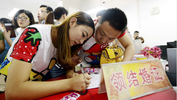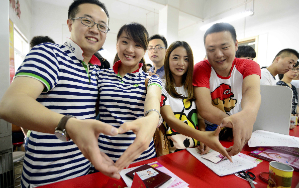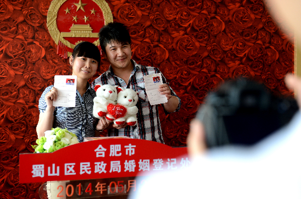 当日是5月20日,因为“520”与“我爱你”谐音,许多新人选择在这一天登记结婚。