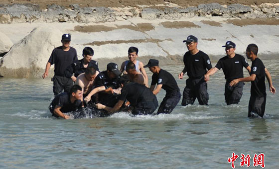 “救命啊!”11日15时许,新疆库尔勒市建设桥附近的孔雀河中传出一名女子的呼救声,途径此地的巴州公安局指挥中心民警潘漪凡和库尔勒市公安局巡警大队民警王汉龙,协警王杰、库尔勒班·图洪及西尔艾力·艾比5人闻讯,先后进入两米多深的河水中营救落水女子,在营救过程中,发现落水的还有一名年轻男子。