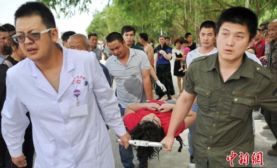 这名看上去20多岁的女子神志清醒,在回答了现场民警的询问后,120医护人员急忙将其抬上救护车送往医院救治。