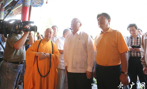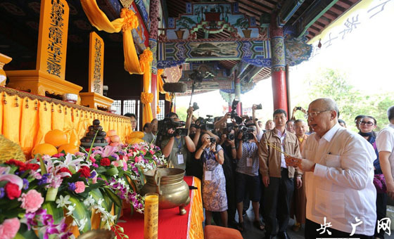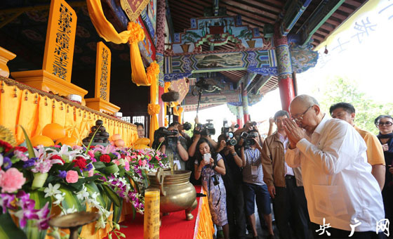 2014年6月11日,北京,中国国民党名誉主席吴伯雄来到云南省腾冲县来凤寺,拜谒拜谒“中国远征军全体阵亡将士灵位”。图为吴伯雄拜谒“中国远征军全体阵亡将士灵位”。图片署名:京华时报-东方IC