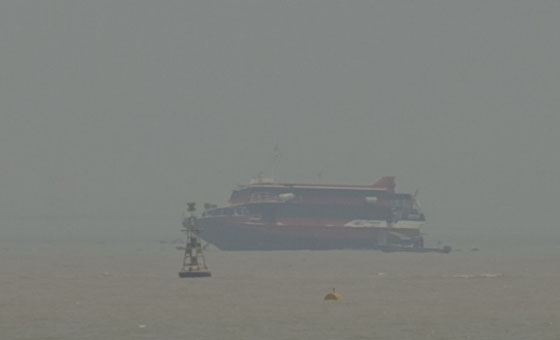 2014年6月13日,澳门,于早上8时30分由香港上环开往澳门的喷射客船“幸运星”,于9时35分左右,在澳门航道撞上防波堤,共有约70人受伤。肇事船。
