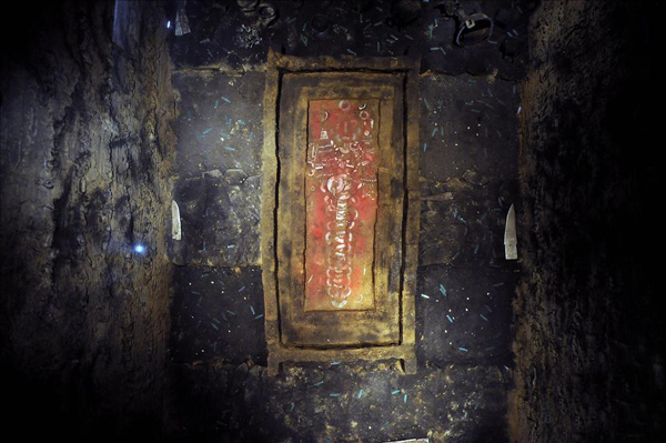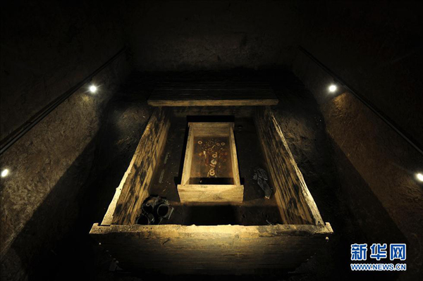 2014年6月13日 晋国博物馆将于“文化遗产日”对外开放这是晋国博物馆内展示的晋献侯夫人墓(6月12日摄)。