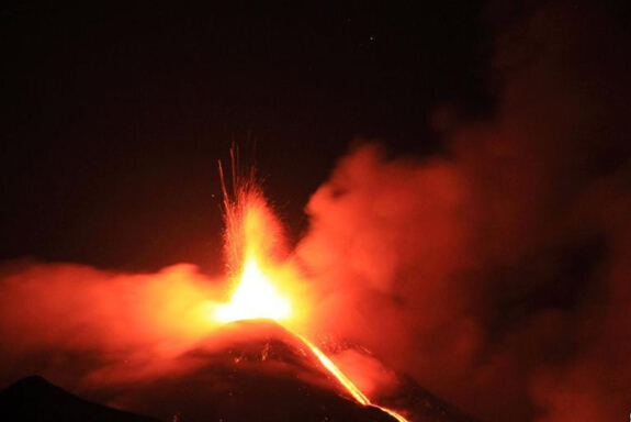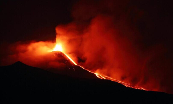 当地时间6月15日,意大利西西里岛,埃特纳火山再次喷发,现场犹如世界末日,世界一片血红。
