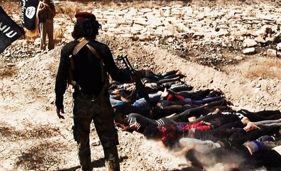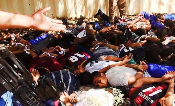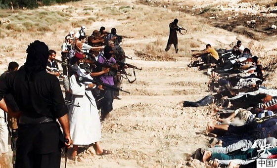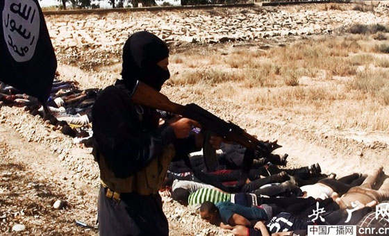 当地时间2014年6月14日,伊拉克萨拉赫丁,伊拉克极端武装“伊拉克和黎凡特伊斯兰国”武装人员处决大量俘虏的伊拉克士兵。