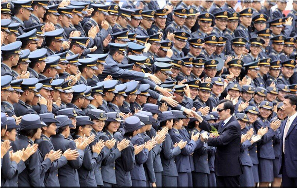 马英九16日出席黄埔建军90周年校庆暨三军联合毕业典礼,与毕业生合影后向毕业生握手致意。(图片来源:台湾“中央社”)12345678 来源:人民网-台湾频道 2014年06月16日13:50