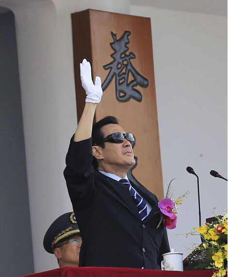 据报道,马英九亲临主持典礼,由于他日前才动白内障小手术,今天阅兵全程戴墨镜出席。