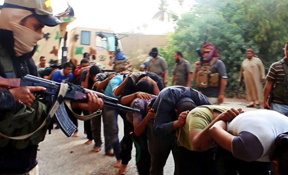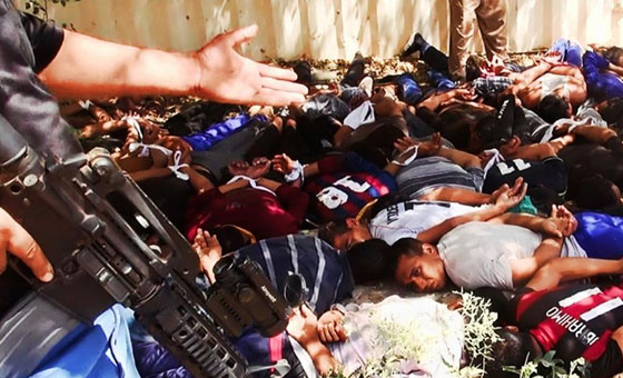 6月17日,伊拉克国内的极端组织“伊拉克和黎凡特伊斯兰国”公布一段拍摄时期不详的视频,画面显示极端主义分子枪杀伊拉克政府军士兵。今年以来,伊拉克国内的极端组织“伊拉克和黎凡特伊斯兰国”战斗力猛增,连续占领了伊拉克数个重要城市,俘虏及枪杀了大批政府军士兵,据称已有1700名被俘的伊拉克安全部队什叶派成员被处决。