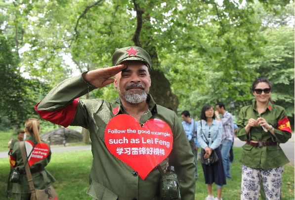 据报道,原本计划宴请千人的活动在本周一被临时缩减成了250人的宴席。警方认为因为安保现场秩序维护等问题会场最多只能容纳300人,因此取消在草坪上的700人宴席。但陈光标表示,他会把余款交给救助站发放。在谈及此次活动时,陈光标对记者表示:“我心里要有鬼你叫我高调我敢高调吗?”同时他也感叹“做好人实在不易啊”。虽然千人宴的规模会变成百人宴,但是现场150多位义工穿上陈光标从中国带来的雷锋服和红军服。一名自称葡萄牙裔的纽约男子就在场外向我们展示了他的新服装,他的手里举着一个桃心形的牌子,上面写着中英文“学习雷锋好榜样”。