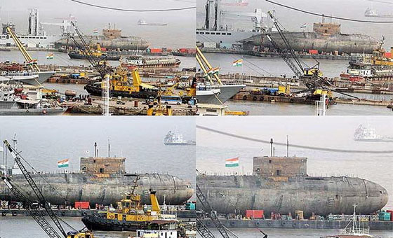 印度海军“辛杜拉克沙克”号(Sindurakshak)基洛级潜艇于2013年8月发生爆炸沉入孟买港口的,在经过10个月的漫长打捞后,终于在近日成功出水。