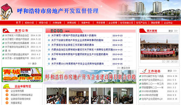今日上午的呼和浩特市房地产开发监督管理处网站首页