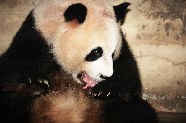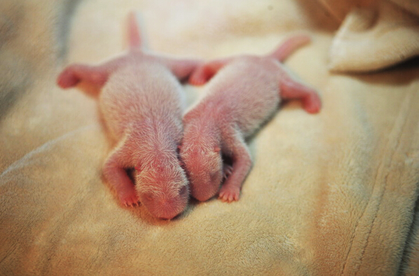 6月30日8时13分-8时44分,成都大熊猫“娅星”在成都大熊猫繁育研究基地先后产下两只幼仔,这也是成都马年诞生的首对大熊猫龙凤胎。图为大熊猫“娅星”和幼仔在一起。