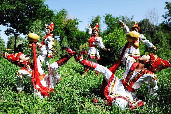 6月30日,甘肃山丹县的演员们演艺西域古典舞蹈胡腾舞。据了解,该县演艺公司根据历史资料创排出西域古典舞蹈胡腾舞。胡腾舞,流传于西北地区的一种民间舞蹈。唐代宗时,河西、陇右一带20余州被吐蕃占领,原来杂居在该地区的许多胡人流落异乡,有的以民族歌舞谋生,有的以做边贸生意为生。每当交易谈成时,双方便饮酒做乐,胡人遂趁兴起舞,于是,“胡腾舞”在河西走廊一带流传开来。