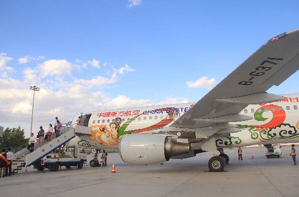 当日,由东航执飞的“绚丽甘肃”号客机从兰州起飞,经停金昌后抵达敦煌。据悉,从7月1日开始,敦煌机场将新增甘肃张掖、金昌两个通航城市。“绚丽甘肃”号航班的开通运营,对促进敦煌、金昌、张掖、兰州区域旅游经济发展将起到积极作用。
