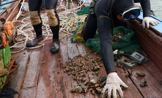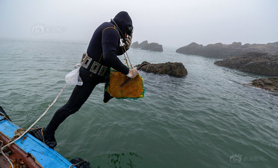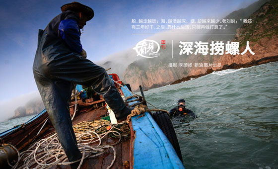 10年前,螺不用捞,聚在一起有10公分厚;现在,即使潜入水下10米,也得仔细寻找。嵊山岛上的捞螺人,买不起几百万的远洋渔船,近海也无鱼可捕,他们,只能用最简单的设备,潜入深海,以生命为代价换来并不丰厚回报。摄影:李颀拯