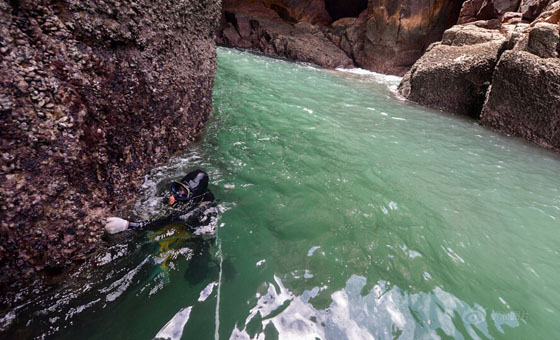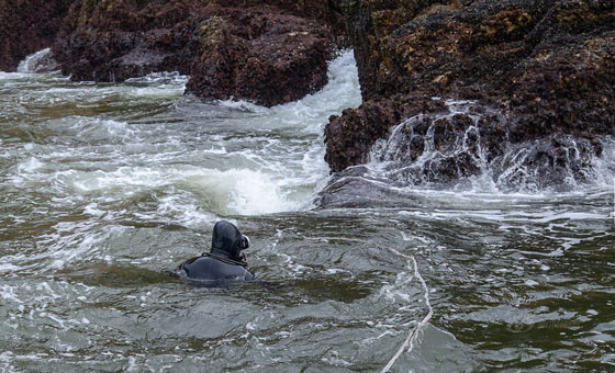 视线顺着海面上飘出的气泡的移动,半个多小时后,看到老刘正游向一片暗礁,暗礁的东侧突然出现一个大的旋涡,船老大立即起身去拉,但还是慢了一步。老刘浮出水面时,还是被大浪甩在了岩石上。上船后,他一边骂娘一边不停的咳。