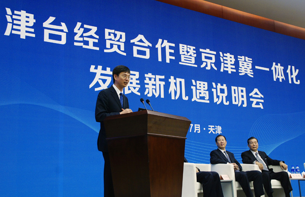 当日,津台经贸合作暨京津冀一体化发展新机遇说明会在天津梅江国际会展中心举行,京津冀三地台办主任及两岸政商各界200余人与会。