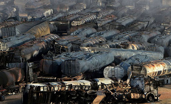 国际在线专稿:据英国《每日邮报》7月6日报道,阿富汗首都喀布尔(Kabul)郊区约200辆油罐卡车日前在塔利班武装人员袭击中被点火烧毁,当地停车场变身卡车墓地。