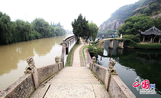 2014年7月7日所拍摄的浙江绍兴市东湖风景区,一墙之隔水质差别明显。中国网图片库 李瑞昌 摄影