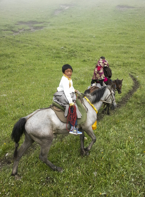 卓玛当周的小儿子尼西甲骑着马参加煨桑节(2013年7月22日摄)。煨桑节是藏族祭祀节日,一般在夏季举行,主要是为了祈求丰收、平安和祛病等。
