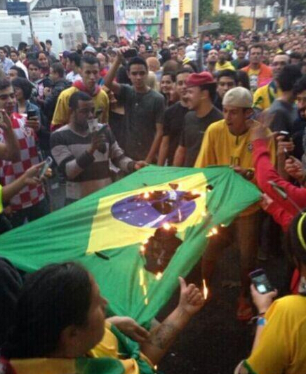 当地时间18点40,也就是距离比赛结束还有10多分钟时,在巴西圣保罗州的Sapopemba大街上,有人开始纵火;19点40,瓜鲁柳斯市杜特拉总统镇街道上,不少地方陷入火海。圣保罗南部M'Boi Mirim的车库也有公交车被焚烧,至少有8辆汽车被烧毁,目前暂无人员伤亡消息。