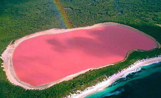 希勒湖:这不是一个草莓奶昔,这是位于澳大利亚西部洛切切群岛的希勒湖是西班牙的粉色湖泊自然保护区,它们都看上去美轮美奂,也向世人证明一些不那么好看的东西——海藻,也可以非常漂亮。事实上,正是海藻产生的多种类胡萝卜素使得湖泊看上去如此惊艳。一旦湖水的盐度超过海水的盐度,在高温和充足光照下,湖里的海藻便开始聚集红色β胡萝卜素,使湖泊变成粉色。由于湖泊含有大量盐分,所以附近也有居民采盐。世界上大多数的粉红色湖泊都有着很高含盐度,而它们含盐的湖岸看起来也极像沙滩。