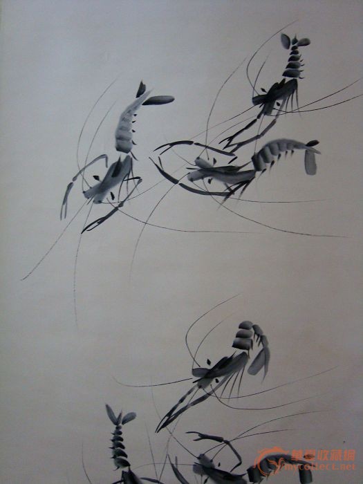 款識:金陵先生正。八十九歲白石。鈐印:年八十九、白石齊白石畫蟹,和他畫蝦一樣有名。胡佩衡、胡橐在《齊白石畫法與欣賞》一書中,對他畫蟹有具體的介紹:老人研究畫蟹殼經過了很長的時間,五十多歲時只畫一團墨,看不出筆痕來,后來把一團墨改成兩筆,再后六十多歲時改畫三筆,不分濃淡,仍沒有甲殼的感覺,直到七十歲后,才畫出甲殼的質感來。即用「豎三塊」畫殼,其筆墨有力,墨色變化豐富,黑白灰過渡明顯,層次分明,質感強烈。