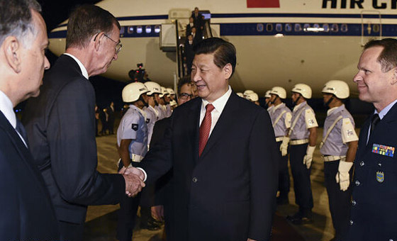 法制晚报讯 据智利《国家报》报道,习近平昨日在巴西利亚皇家郁金香酒店会见了智利总统巴切莱特,随后邀请拉美国家领导人赴宴。法晚记者今晨致电巴西利亚皇家郁金香酒店获悉,约有200人赴宴,菜品以中国菜式为主。