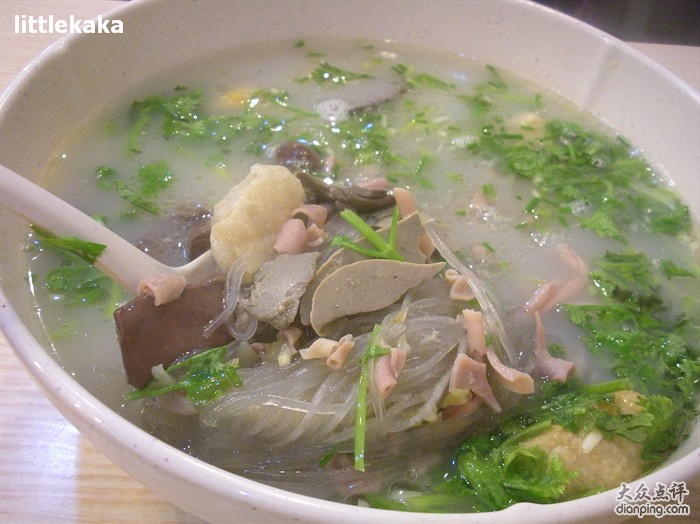 鴨血粉絲湯是用鴨血、鴨肝、鴨腸配以粉絲,以老鴨湯為底燒制而成。嫩滑的鴨血、粉嫩的鴨肝、爽脆的鴨腸和細滑的粉絲,吃后舌齒留香--這時你該意識到,美味本是渾然天成,并不需要重金來粉飾。