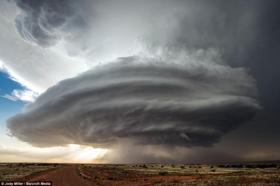 近日,美国莫哈韦沙漠,巨型风暴云宛如UFO在天空中盘旋。
