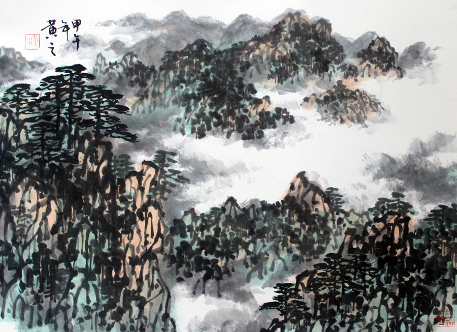 也許,在黃之看來,黃山本身就是逍遙的,也許黃之在黃山的感受就很逍遙,也許黃之的黃山之作很是逍遙。正如黃之在《逍遙黃山》的跋中所記:初上黃山,松奇石怪;再上黃山,雲起成海;三上黃山,夢遇太白;問道黃山,逍遙游哉。這是畫家十餘次登黃山的真切感悟和思想升華的歷程。