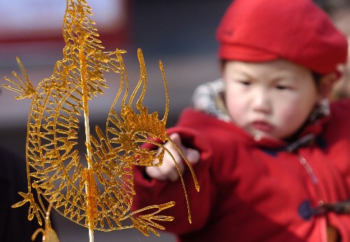 糖畫起源於明代的「糖丞相」,褚人獲《堅瓠補集》載,明俗每新祀神,「熔就糖」,印鑄成各種動物及人物作為祀品,所鑄人物「袍笏軒昂」,儼然文臣武將,故時戲稱為「糖丞相」。后來,民間藝人又將中國皮影、民間剪紙等姐妹藝術的造型手法融於一體,不用印鑄模具,而改為直接操小銅勺,舀糖液繪出皮影圖案,逐漸演變發展成為今日的糖畫藝術。用小圓勺舀起銅桶中的糖液,以腕力帶動勺子運行,隨意揮灑在光潔的大理石板上,或提、或頓、或放、或收,速度飛快,一氣呵成。隨著糖液縷縷灑下,在不到1分鐘的時間里,栩栩如生的飛禽走獸、花鳥蟲魚等形象便呈現在眾人面前,尤其是威風凜凜的游龍和絢麗多姿的彩鳳,人們無不贊賞為「觀之若畫,食之有味」。關於糖畫,有一個生動有趣的民間故事。相傳唐代四川大詩人陳子昂在家鄉時,很喜歡吃黃糖(蔗糖),不過他的吃法卻與眾不同。他會首先將糖溶化,在清潔光滑的桌面上倒鑄成各種小動物及各種花卉圖案,待凝固后拿在手上,一面賞玩一面食用。后來陳子昂到京城長安游學求官,因初到京師人地兩生,只做了一個小吏。镕暇無事時,便用從家鄉帶去的黃糖如法炮制。一天,宮中太監帶著小太子路過,小太子看見陳子昂手中的小動物,便吵著要。太監要了幾個給太子,歡歡喜喜回宮去了。誰知回宮后小太子將糖吃完了,哭著吵著還要,驚動了皇上,太監只好上前如實回稟。皇上聽完原委,立即下詔宣陳子昂進宮,并要他當場表演。陳子昂便將帶去的黃糖溶化,在光潔的桌面上倒了一枚銅錢,用一支竹筷粘上送到小太子手中,小太子立即破涕為笑。皇上心中一高興,脫口說出「糖餅(兒)」兩字,這就是「糖餅(兒)」這一名稱的由來。由此陳子昂便得到了升遷,官至右拾遺。