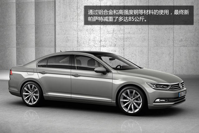 平台方面,全新大众帕萨特放弃了现款的PQ46平台,转而采用了全新MQB模块化平台打造而成。通过铝合金和高强度钢等材料的使用,最终新帕萨特减重了多达85公斤。
